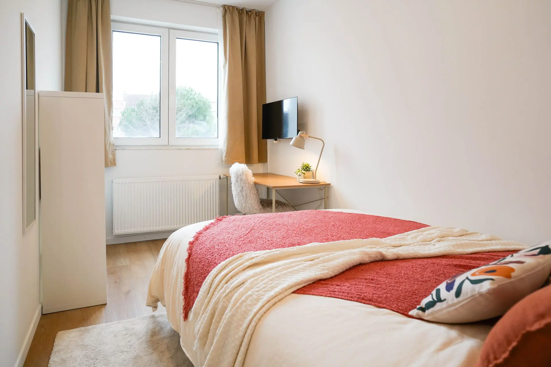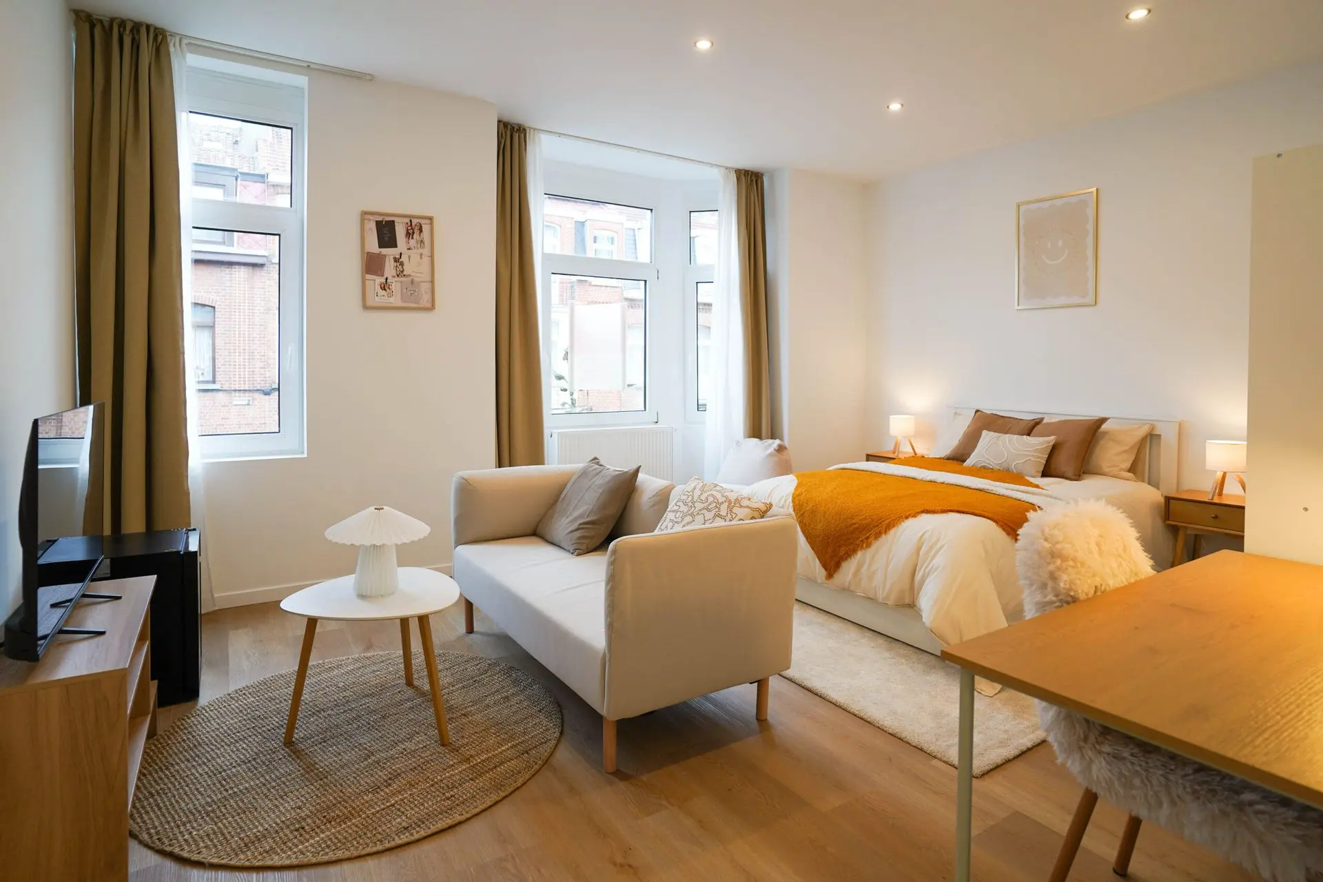 Ce projet consistait à meubler une maison de 6 chambres entièrement rénovée, destinée à la colocation. Nous avons créer une ambiance chaleureuse et familiale, afin que chaque habitants s'y sente comme chez lui. Chaque chambre doit contenir un lit, une armoire, un bureau, une tv. Quand cela est possible (et grâce à une aménagement optimisé), nous intégrons un coin lecture/fauteuil ou bien un coin salon/canapé, augmentant ainsi la valeur et le confort de la chambre.
